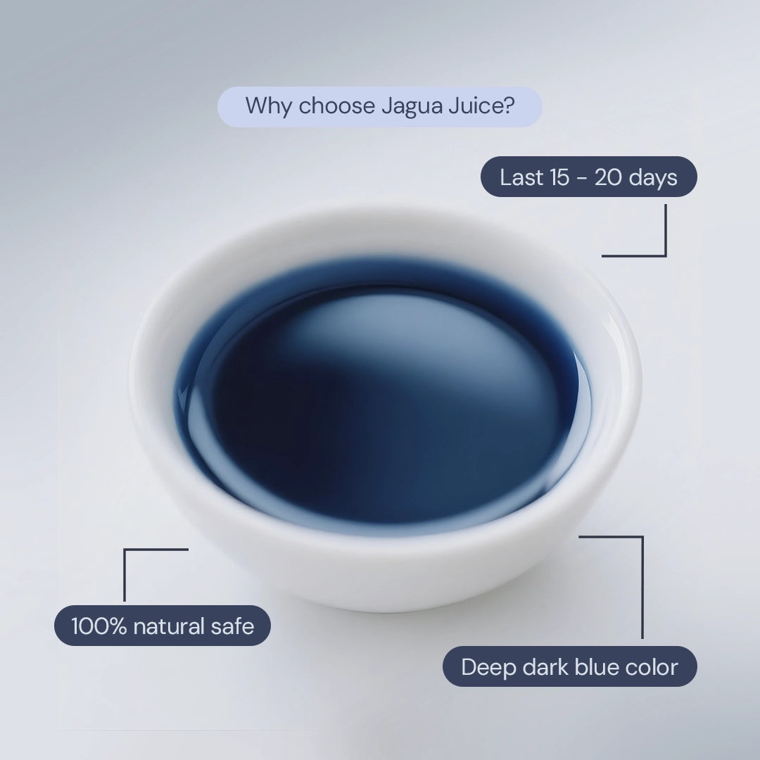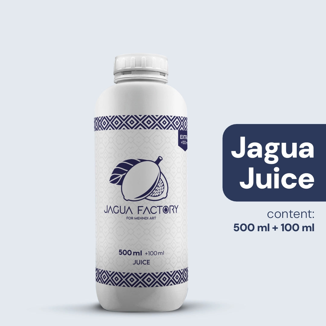 "Perfect for mehndi art and temporary tattoos, Jagua Juice Ink is 100% pure and natural, made from fresh Genipa Americana of the Peruvian Amazon. Tested under strict cosmetic standards, it delivers vibrant, long-lasting results so you can create safely and with confidence."